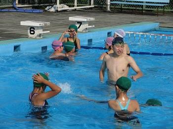 7月7日(金)と7月12日(水)の2回、宮野小学校で水泳教室ボランティアを実施しました。本校には水泳部はありませんが、水泳経験者が多数います。今回は、水泳大会に出場する小学生約50名の指導をしました。