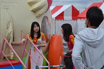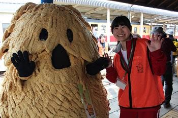 ねじりほんにょの中に入る係は、想像以上に重たく周りも全然見えなくとても大変でした。アンケートなどを配る時は、まったく知らない人に声をかけるのは勇気が必要でしたが、お客さんがとても優しくて助かりました。