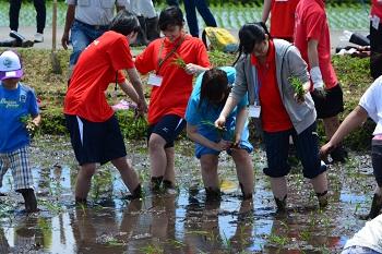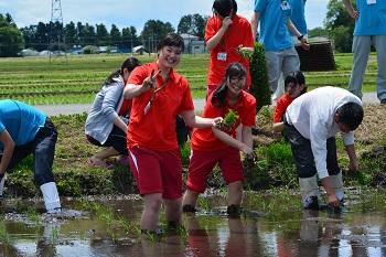 私が小学生のみなさんと話をする時に心がけていたのは、同じ目線で話すことです。心を開いてくれたようで楽しく活動することができました。田植えは初めての体験で貴重な時間でした。今回参加したことで「食」の大切さを強く感じることができました。