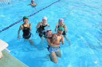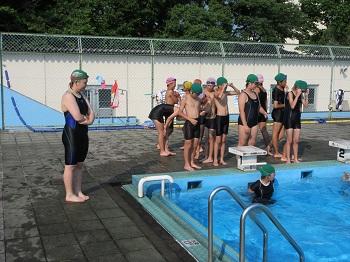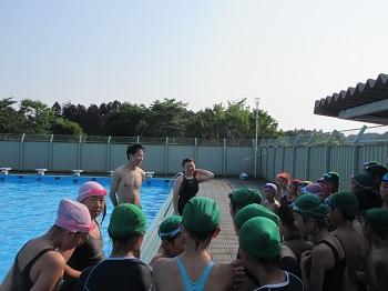 7月7日(金)と7月12日(水)の2回、宮野小学校で水泳教室ボランティアを実施しました。本校には水泳部はありませんが、水泳経験者が多数います。今回は、水泳大会に出場する小学生約50名の指導をしました。
