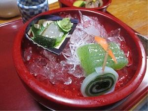昼食はヘルシーなこんにゃく懐石。ほとんどがこんにゃくで出来ており、見た目も味も本物そっくりでびっくり!
