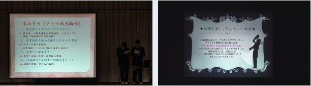 12月8日(火)の7校時に仕事・学校、最前線レポートの発表会を1・2学年合同で行いました。1年年は職場訪問,2年生は学校訪問を10月28日(水)に行い,その内容と学んだことなどを発表しました。