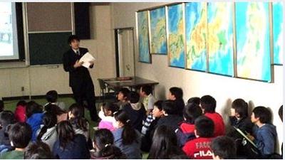 5年生を対象にプロジェクトの取り組みについて話しながら、環境問題について、町の活性化について一緒に考えました。真剣に聴いてくれる5年生の眼差しが印象的でした。