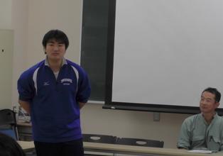 「芝桜プロジェクト」を後輩に引き継いでいくため、1年生にこれまでの取り組みを紹介し、「芝桜で町行く人を笑顔に!」という志を引き継ぎました。2年生の白鳥岳くんから趣旨の説明をした後、小野寺龍生君、春裕貴君の2人でプレゼンテーションを行い、最後に春くんから「10年後、20年後の築館の町を想像してみてください。凄く美しい町だと思いませんか。その美しい町作りを通して私たちも社会貢献できたらすごいと思いませんか。」と語りかけました。これまで活動してきた2年生の自信と熱い思い、真剣に話に聞き入る1年生の姿が印象的でした。
