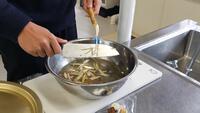 手や器具を洗うのはペットボトル1本。キッチンペーパーは3枚のみ。