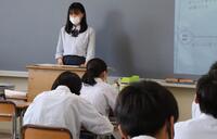 夏休み後、新型コロナウイルス感染拡大防止対策のため、1・2年生はクラスの半数が交互に登校し、自宅ではオンライン授業を受ける分散登校が行われました。2年生が行ったLHRの様子です。黒板に映っているのは自宅でオンライン授業を受けている生徒たちです。