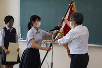 壮行式ではインターハイに出場する女子ホッケー部と、全国総合文化祭に出場する弁論の代表生徒からの決意表明がありました。感染症予防対策に気をつけて、頑張ってきてください!