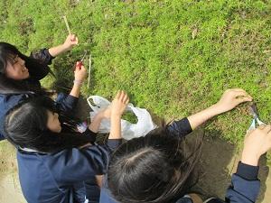 6月8日(月)に、2・3学年で学校周りの芝桜の刈り込みと除草、さし穂作業を行いました。伸びた芝桜をはさみで切り、また雑草や枯れた芝桜を抜いたことでとてもきれいになりました。