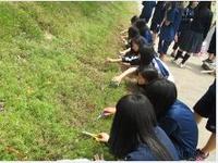 6月8日(月)に、2・3学年で学校周りの芝桜の刈り込みと除草、さし穂作業を行いました。伸びた芝桜をはさみで切り、また雑草や枯れた芝桜を抜いたことでとてもきれいになりました。