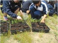 これから芝桜の生長を楽しみに、2学年の各教室前で育てていきます。