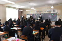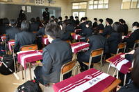 1月14日(木)共通テスト・一般入試受験する生徒の皆さんに向けて、受験の心構えと、自己採点までの流れが説明されました。その後、校長先生、教頭先生をはじめ、先生たちからエールが送られました。