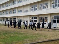 今年度は築館高校の伝統を受け継いで行くため、感染症拡大防止対策をとりながら、応援練習を行っています。声を出さず、校歌などはCD演奏を使い、手ぬぐいのたたみ方、つけ方、応援時の姿勢などを、応援団幹部が指導しています。