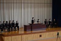 築高同窓会東京支部長の駒井様(代読)、同窓会会長の渡辺様より挨拶をいだだきました。続いて、クラス幹事への委嘱、代表生徒の挨拶と同窓会入会式が無事行われました。