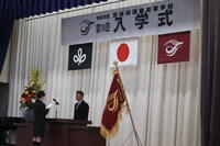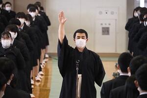 緊張した面持ちの新入生が入場すると,2・3年生が拍手で暖かく迎えてくれました。はじめに生徒会執行部より学校生活の過ごし方について寸劇での紹介がありました。その後,応援団長の号令のもと2・3年生による校歌披露,新入生代表生徒の挨拶と続き,ようやく全学年が一つとなることができました。全校生徒が体育館に一同に会するのは,コロナ禍以降初めてのことでもあり,感慨深いものがありました。