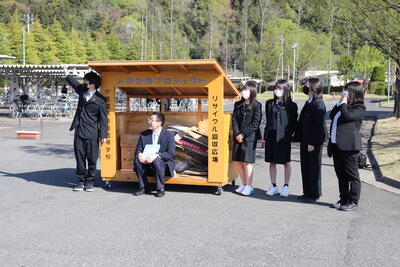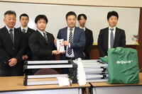 令和5年5月8日(月) (有)フォレックス仙台代表取締役社長 狩野 圭一 様、七十七銀行築館支店兼一迫支店長 馬場 康和 様がご来校くださり、テントを一張り寄贈いただきました。狩野氏は男子校時代の築高OBであり、若くして起業した後、30年近くに渡り地元の農業振興に貢献なされてきた方です。贈呈式では、経営者としてこれまでの道がけっして平坦でなかったことを振り返り、「築高生も失敗や挫折からこそ多くを学んでほしい」というたいへん含蓄あるメッセージをいただきました。生徒会長 三塚 希さんは、「行事のたびに活用させていただきます。本当にありがとうございます。」と感謝の気持ちを伝え、多くの素晴らしい先輩たちがいて現在の築高があるという思いを新たにしました。築高生及び職員一同、心より感謝申し上げます。