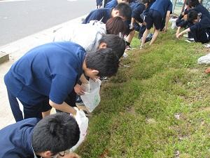 6月8日(月)に、2・3学年で学校周りの芝桜の刈り込みと除草、さし穂作業を行いました。伸びた芝桜をはさみで切り、また雑草や枯れた芝桜を抜いたことでとてもきれいになりました。