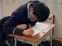 紙にびっしりの過去問を勉強し 真剣に問題を解いています 後日、成績上位の生徒・クラスは