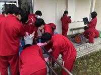 生徒が毎日使用する、手洗い石けんや各教室に設置している手指用消毒液は保健委員会の生徒が管理を行っています。月に1~2回補充日を設定し活動を行っています。また、生徒が共同で使用する洗面台や流し場が汚れている際は、気が付いた保健委員が掃除を行うなど、築高生が衛生的に使用できるよう陰ながら支えてくれています。日々の保健委員さんの働きに感謝です。