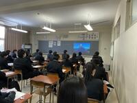 最初に、2年生のみで分野別で発表会を行いました。その後、各分野で代表に選出された班が、全体の場で発表しました。プレゼンテーションソフトを自在に使いこなす班が多く、どの班も工夫を凝らしていました。また、提言も興味深いものが多く、なかでも「地域探究プログラム」で金賞を受賞した班の発表(https://tukiko.myswan.ed.jp/blogs/blog_entries/view/158/57f08bb2ddaa2e37826a5accfd6831ff?frame_id=211)は、目的意識がはっきりしており素晴らしい発表でありました。