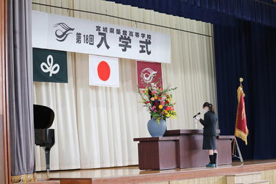 狩野校長からの紹介後、代表 高木伸幸教頭の挨拶は、「どんな時も生徒に寄り添う」という内容の生徒への宣誓でした。