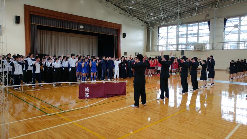 最後に、新応援団長の髙橋楓佳さんの初めての指揮のもと全校生徒による激励応援と校歌斉唱で選手の皆さんを盛大に送り出すことができました。