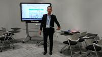 学院大の土樋キャンパスではまずホーイ記念館という新しい建物内にあるラーニング・コモンズという施設に案内され、大学に関する概要説明を受けました。このラーニング・コモンズという施設は学生達がお互いに自由にアイディアを出し合いアクティブラーニングの形で研究を深めるために専用で作られたもので、電子黒板などの設備が充実しており、話し合いしやすいように机が自由にレイアウトできたり、館内のデザインも自由な意見交換がやりやすいような斬新な工夫がこらされていて、最先端の学生の学びの姿には驚きの連続でした。