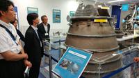 角田宇宙センターでは、この施設での最先端の宇宙技術の研究・開発の様子について非常に丁寧な説明をして頂きました。このセンターには、宇宙空間で使用する第2段目のロケットエンジンの燃焼試験ができる施設が備わっており、これまでの日本製の歴代ロケットのエンジンの開発や将来、国際宇宙ステーションに荷物を運搬するために繰り返し使用できる有人宇宙船スペースプレーンの開発などを行っているそうです。施設の床のほぼ中央には40万分の1の日本地図の写真が描かれており、気分はほぼ宇宙飛行士で説明を聞くことができます。またテフロンはエンジンに必要な潤滑材の開発から生まれてきただとか、ISSは肉眼で確認できるなどの豆知識も教えて頂き、大変勉強になりました。