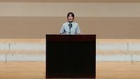 続く選手の決意表明では、まず陸上競技の短距離でインターハイに出場する鵜澤飛羽くんから「これまでの活動では辛いこともあったが、みんなに支えられて頑張れた。全国で一番速い男になって帰りたい」という力強い決意表明があり、つぎに弁論で県代表として全国総合文化祭に出場する田代比奈さんからも「72名の代表弁士から様々なことを学び、上位6名に入れるよう頑張りたい」というやはり穏やかながら強い思いを秘めた決意表明がおこなわれました。