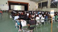 つづいて145名の参加で、PTA・教育振興会総会が行われました。主な議題は、今年度より地区PTAの統一開催を見直し、各地区の実情に応じて開催してもらうという事業計画とそれに伴う予算執行内規の変更、及び新役員の選出でしたが、いずれも満場一致で原案が承認されました。