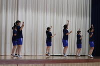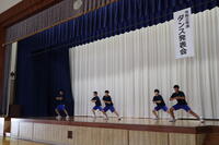 練習の際は、教員自ら踊った動画を壁に投影し、体育館全体を使って行いました。発表前は真剣な様子でダンスの確認をしていた生徒たちも、発表後は他のグループへ大きな拍手を送っていました。(ステージ発表時のみマスクを外しています)