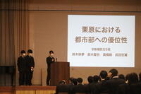 3月22日(水)本校の探究テーマである「日本一住みやすい街『くりはら』」の成果発表会を開催しました。佐藤栗原市長をはじめ,多くの市議会議員の皆様,学校評議員の方々のご出席を賜り,栗原市の現状を踏まえた市への提言を行わせていただきました。ご出席者からは,「栗原市を知ってもらいその課題に共に取り組む良い機会である」「郷土愛と市民としての意識を高める良い取り組みであり是非継続してほしい」「高校生の視点での課題の切り口がおもしろい」など,大変高い評価をいただきました。また,今後のより良い実施に向けた具体的なご指摘も頂戴しました。令和5年度の実施に際し,改善を重ねて参りたいと思います。ありがとうございました。なお,このプロジェクトは宮城県の「地域とともにつくる魅力ある県立高等学校支援事業」の指定校として助成を受け実施している事業です。