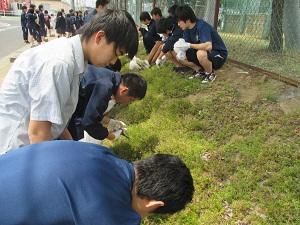 6月8日(月)に、2・3学年で学校周りの芝桜の刈り込みと除草、さし穂作業を行いました。伸びた芝桜をはさみで切り、また雑草や枯れた芝桜を抜いたことでとてもきれいになりました。