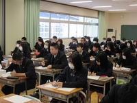 他校と合同ということで初めは少し緊張した様子でしたが、時間とともに打ち解けてきて程よい緊張感で臨んでいました。自学自習が中心でしたが、途中にグループワークや予備校の先生より数学と英語、そして東北大学を中心に今後の入試の傾向を聞き、とても刺激を受けていました。この経験を活かして、第一志望の大学に合格できるよう、より一層励んでもらいたいと思います。