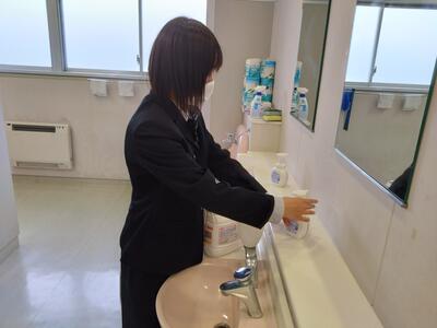生徒が毎日使用する、手洗い石けんや各教室に設置している手指用消毒液は、保健委員会の生徒が月に1回補充日を設定し補充を行っています。また、これ以外にも、換気や手洗いの必要性を伝えるなど、生徒一人ひとりが自己管理を意識できるように働きかけています。