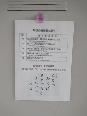 ◎清掃の徹底については、毎日の重点項目を作成し、曜日毎に掲示ができるよう工夫しています。重点項目を意識した清掃を働きかけています。