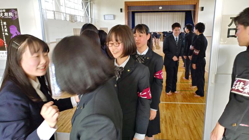 4月11日木曜日、雪が朝方まで降りしきる季節外れの寒さの中、対面式が行われ、153名の新入生が先輩たちにより拍手で迎えられました(新入生入場の際の伝統の靴慣らしは体育館に床が傷つくという理由で数年前に廃止になったようです。時代の流れですかね)。