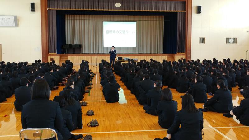 10日(金)3,4校時の時間帯に、築館警察署から講師の方を招いて今年度の交通安全及び防犯教育講話が全校生徒を対象に行われました。