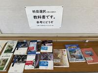 2学年主任T先生:進路に合わせて科目を選択できるように3年生で使用する教科書を並べました。生徒達も興味を持って教科書の中を見ています。