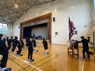 4月25日(木)に行われる臙紫定期戦に向けて、応援練習が始まっています。また、生徒昇降口には「檄文」登場し、築館高校4月の恒例の風景となっています。1年生は初めての経験となりますが、先輩と一緒にぜひ、盛り上げて欲しいと思います。築館高校に勝利を!!