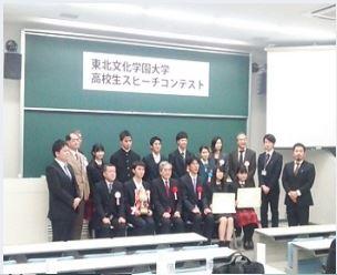 11月19日(土)に東北文化学園大学で「高校生スピーチコンテスト2016」が行われました。本校からは3年生川田雅己くんと、2年生髙橋未歩さんが出場しました。