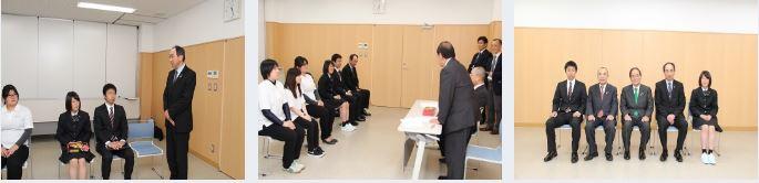 新任式では、人事異動により本校に着任した三浦孝洋校長先生はじめ19名の先生方が紹介されました。