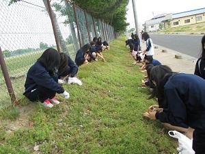 6月8日(月)に、2・3学年で学校周りの芝桜の刈り込みと除草、さし穂作業を行いました。伸びた芝桜をはさみで切り、また雑草や枯れた芝桜を抜いたことでとてもきれいになりました。