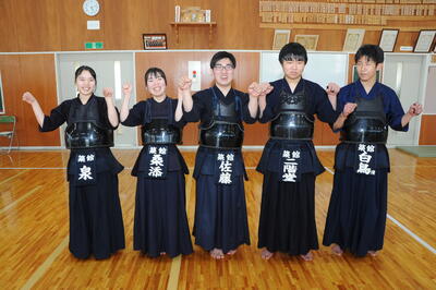令和7年度本吉支部・栗原登米支部高等学校総合体育大会剣道競技 男子団体 優勝 先鋒 佐藤 壮(3年) 次鋒 加藤 碧(1年) 中堅 二階堂 湧(3年) 副将 三浦 優心(3年) 大将 高橋 寛大(3年)