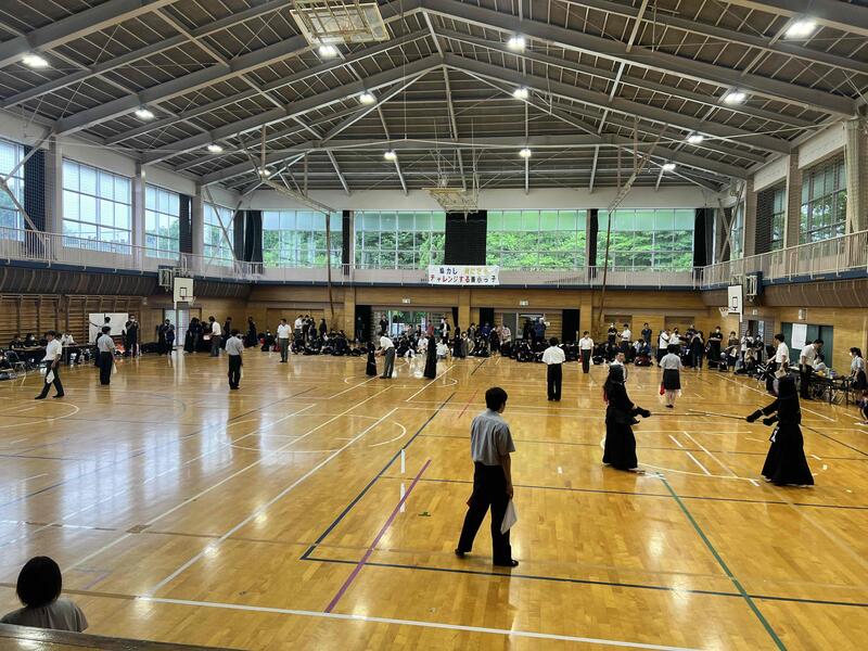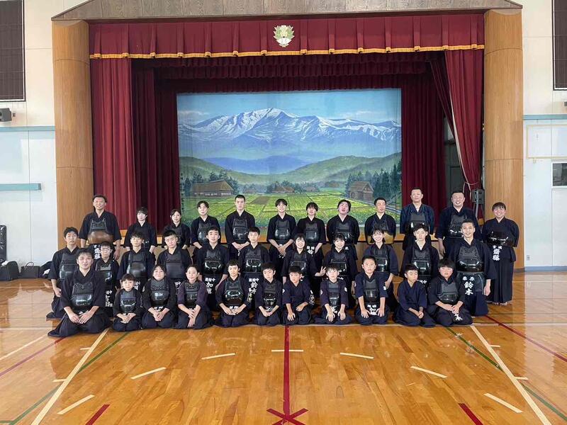 若柳総合体育館(若柳アスパル)を会場に埼玉県から8校、岩手県から2校、宮城県内から9校、合計19校が集まり大規模な錬成会を実施しました。総勢200人を超える選手が集まり、熱戦を繰り広げる中、他県同士が交流を深め「交剣知愛」の精神のもと充実した時間と経験を得ることができました。