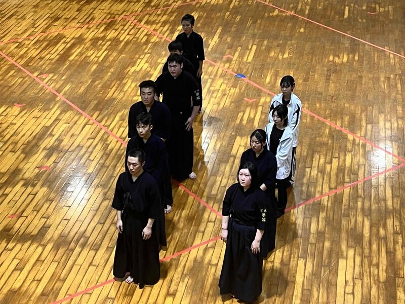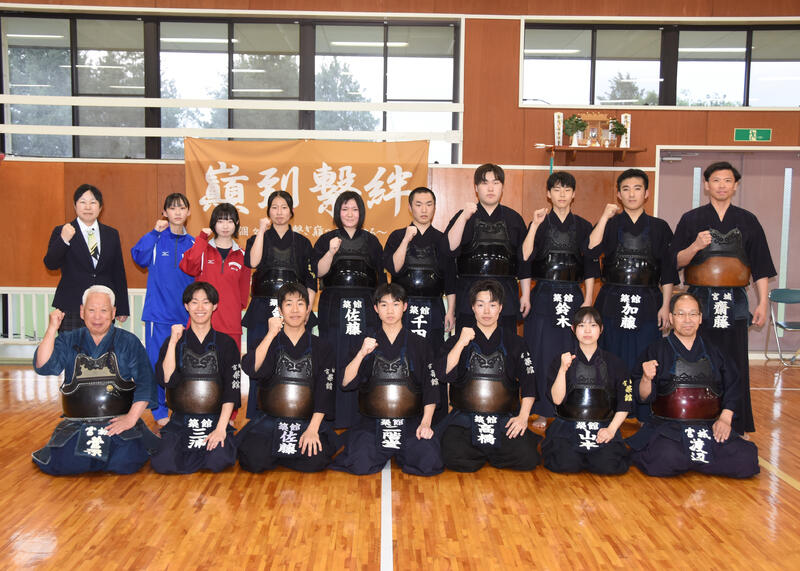 男子11名、女子2名、合計13名で活動しております。先輩たちが築いてきた伝統等を引き継ぎ、日々稽古に励んでいます。また、栗原市内の少年剣士育成に貢献すべく、2020年10月から、月に1度のペースで小中学生と合同稽古を行ってきました。まもなく2年になり、合同稽古で繋がった小中学生の目標になれるように各種大会で好成績を残したいと思っております。