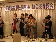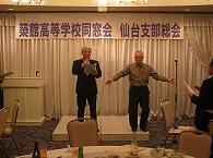 懇親会では、演歌歌手 高橋規臣さんの歌や栗駒音頭の踊りが披露され、参加者53名が楽しいひとときを過ごしました。最後は旧築高、女子高、現築高の校歌で締めくくられ、仙台支部総会が盛大に執り行われたことを報告します。