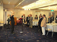 今年度は総会に先立って、今野家世はね師匠(35回生小岩昇平さん)による、落語を交えた講演が 行われました。東北弁による落語に、会場内も終始笑いが絶えませんでした。