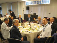 総会に続き、懇親会が行われました。参加者全員による自己紹介スピーチが行われ、楽しいひとときを過ごすことができました。当日は、台風19号の影響で、時間を短縮しての実施となりましたが、最後は、校歌やエールで会場は大いに盛り上がりました。