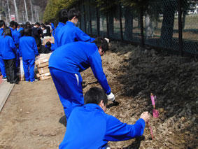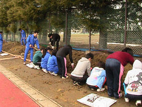 天候にも恵まれ、予定通り、修業式後11時から芝桜の植栽行事を行うことができました。