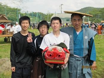 初めて花山鉄砲まつりボランティアに参加して、鉄砲まつりの伝統を見ることができてとてもいい経験になりました。私は子どものみこしの補助を手伝いました。たくさんの人と交流ができたので、このボランティアに参加して良かったと思いました。校長先生も活躍していました。本当に楽しかったです。